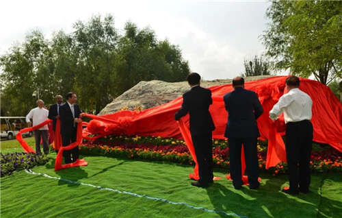 最后,伴随着热烈的掌声,文化和旅游部副部长张旭先生,宁夏回族自治区副主席杨东先生,银川市政府副市长张全智先生,阿拉伯国家联盟驻华代表处大使马哈穆德·艾勒艾敏先生,巴林王国驻华大使安瓦尔·艾勒阿卜杜拉先生,中国美术家协会副主席、中国雕塑学会会长、清华大学美术学院副院长曾成钢先生共同为银川友谊雕塑园揭幕。合影留念结束后,参加开幕式的领导和嘉宾一同参观了园中精美的雕塑作品。